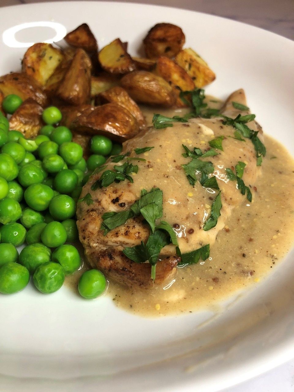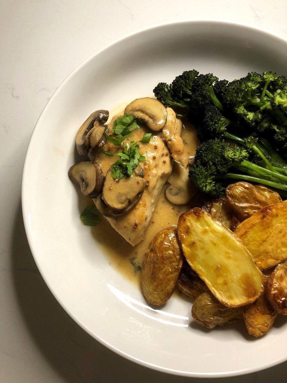 It's lovely served with roasted 'saute' potatoes and broccoli, but would also be delicious with steamed new potatoes and salad.