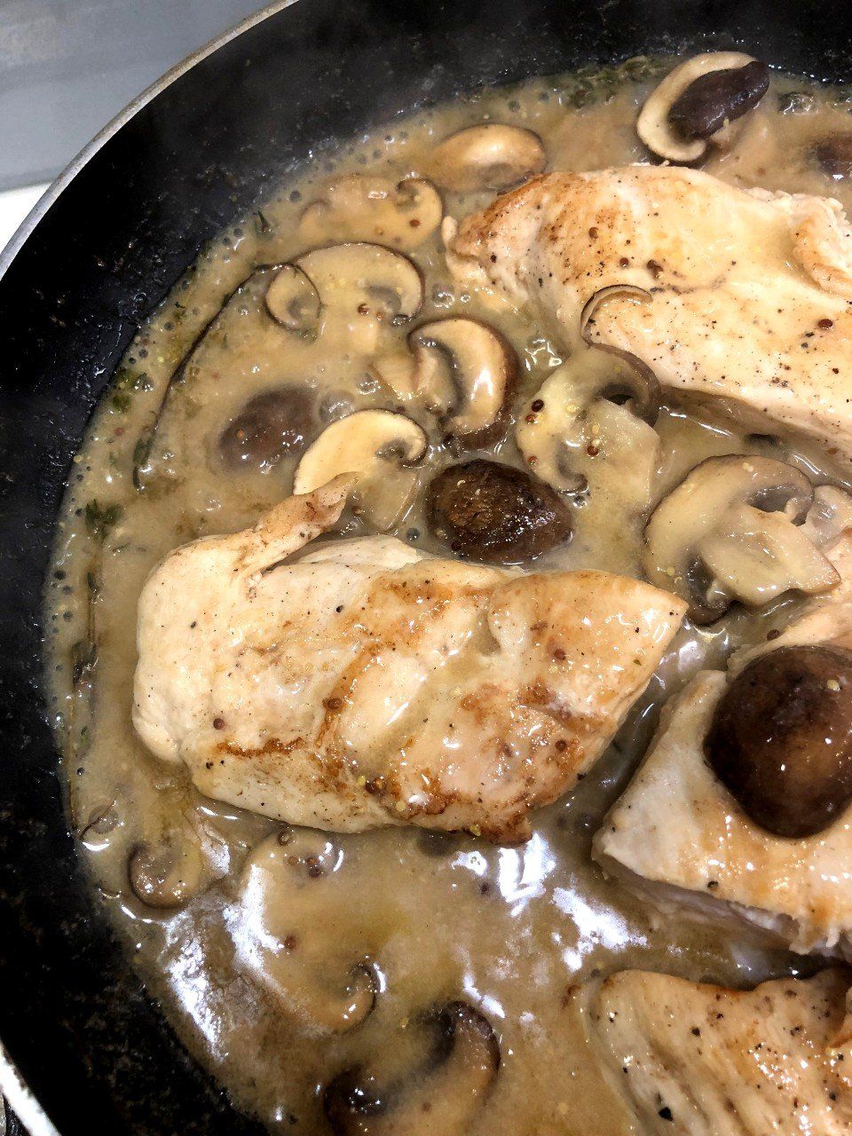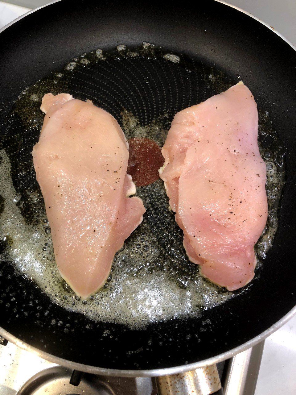 - Once the butter has melted and is foaming, add the chicken breasts (it's best to do this in two batches, or to use two pans, to avoid the chicken from sweating).