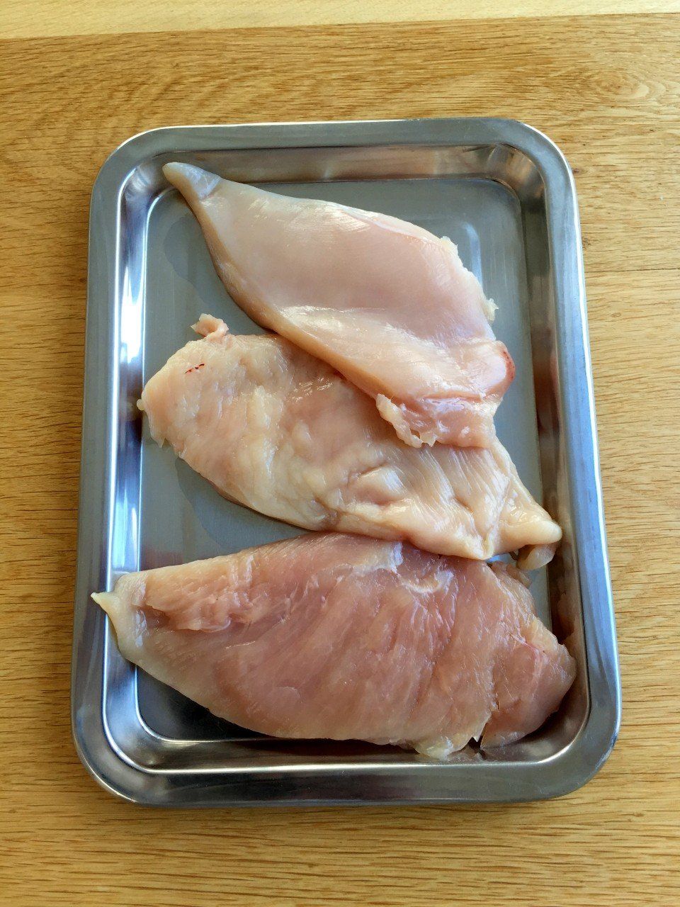 - If the chicken breasts are large, cut the chicken fillet (tenderloin) from the chicken breasts and save for another dish.