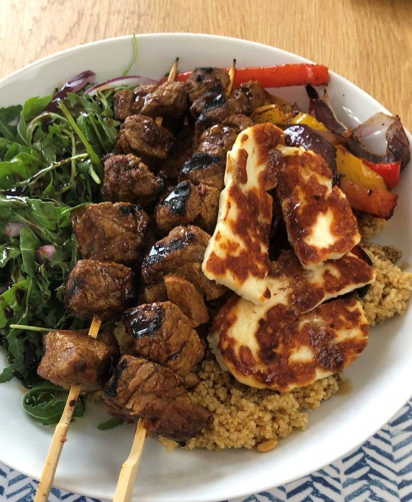 These lamb kebabs are so easy to throw together, and versatile too! Delicious served with cous cous but also perfect in a pitta or flatbread with a bit of salad and a dollop of tzatziki.