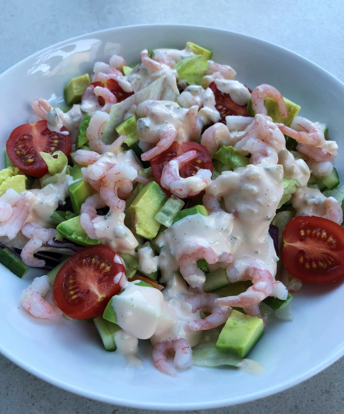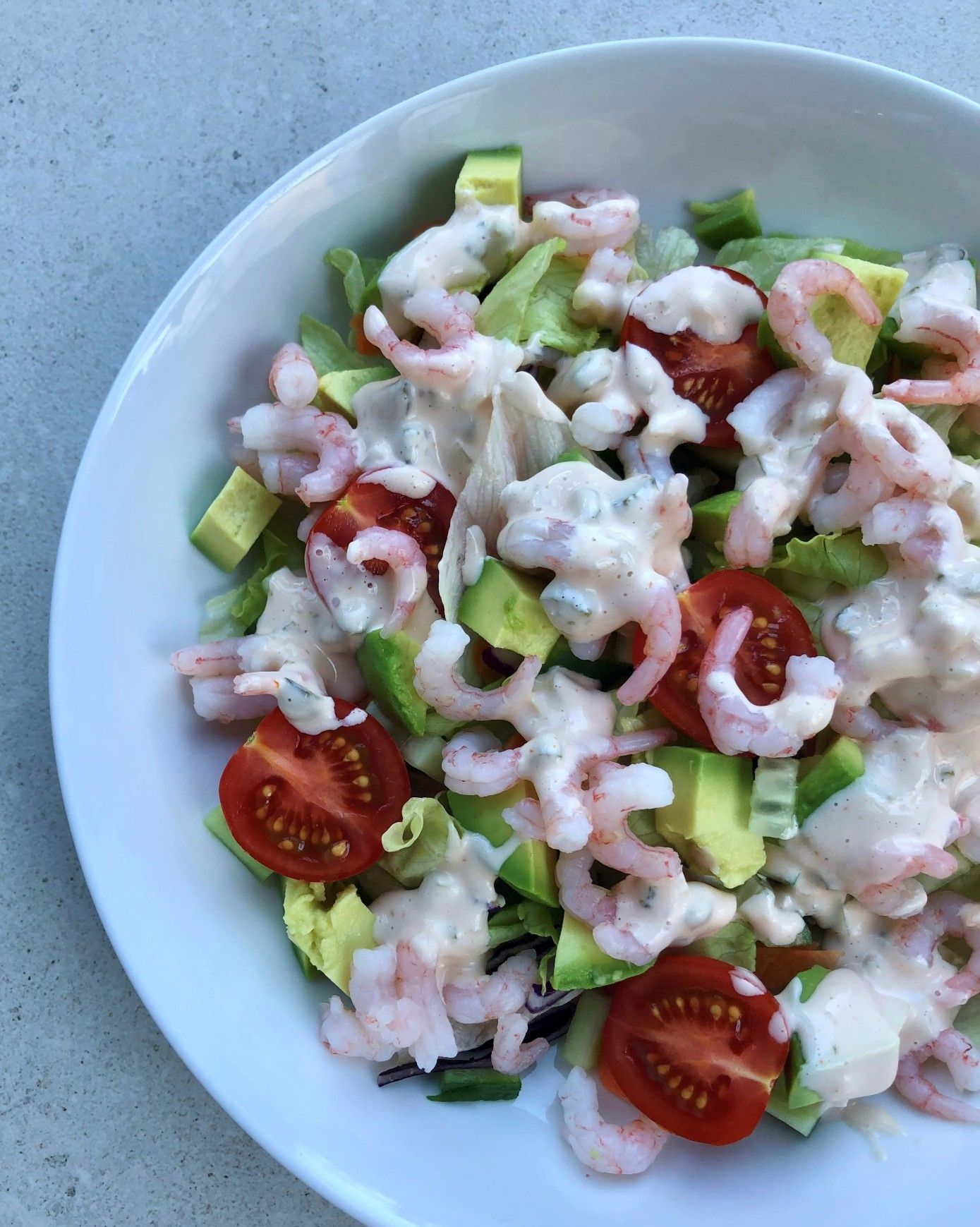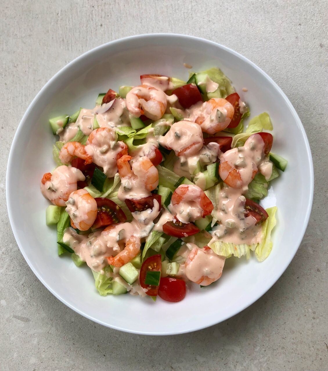 I love a prawn cocktail and although I've served it in a bowl in this recipe, it can be easily served in a prawn cocktail glass if you prefer.