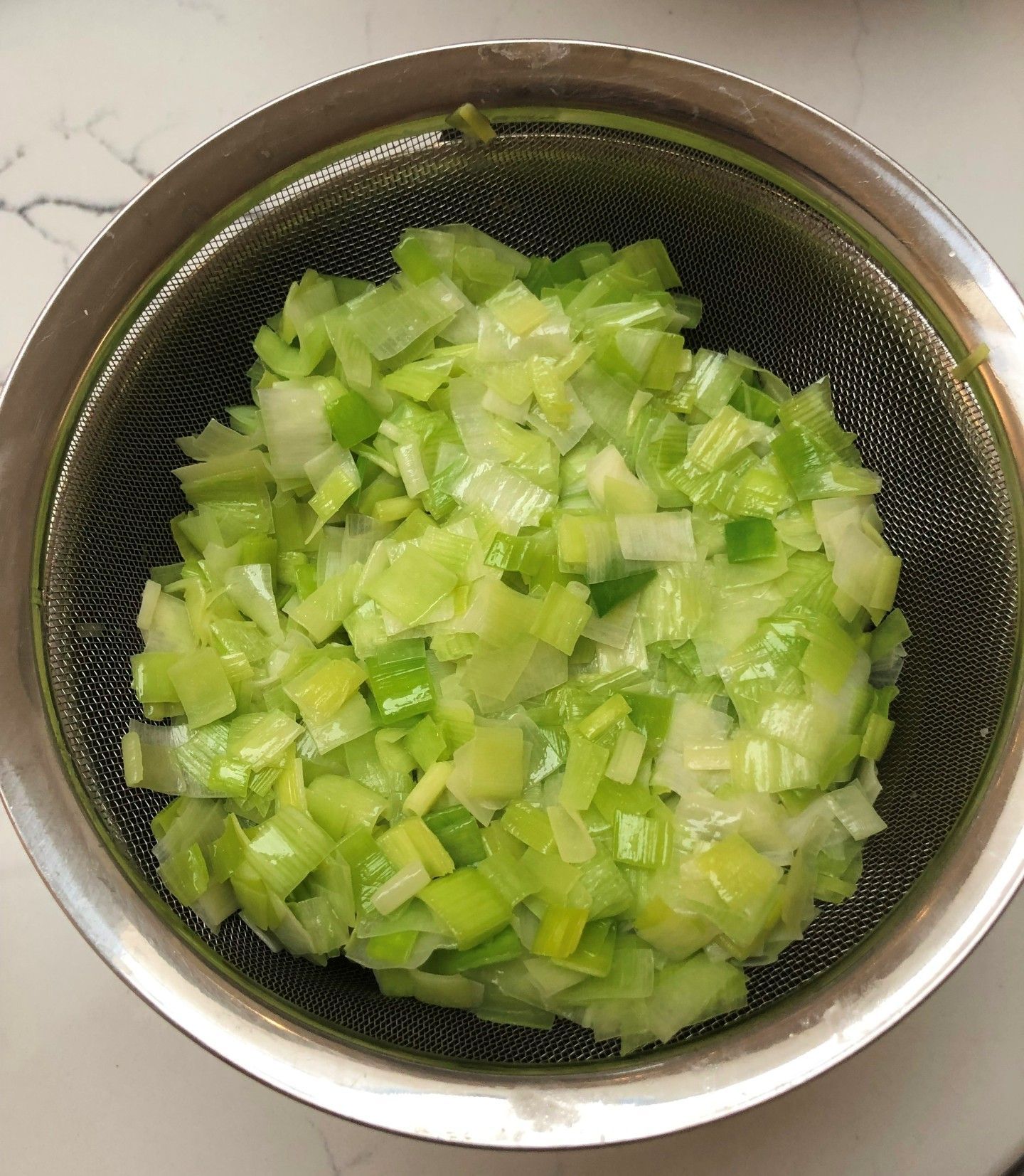 - If there is liquid in the leeks, then drain in a sieve to remove the excess liquid.