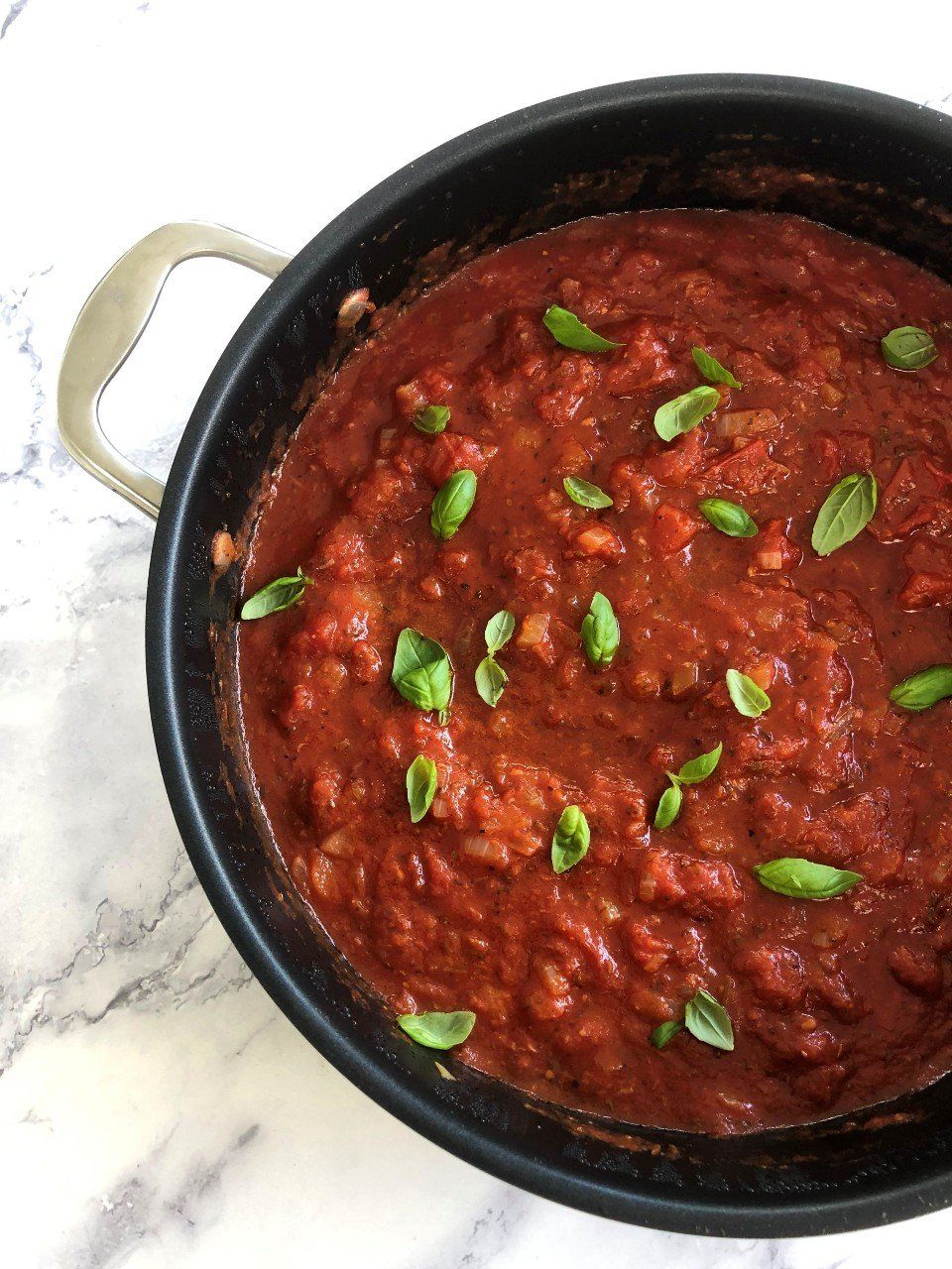 - Bring the tomato sauce to the boil then cover, lower the heat and simmer for 30-35 minutes.