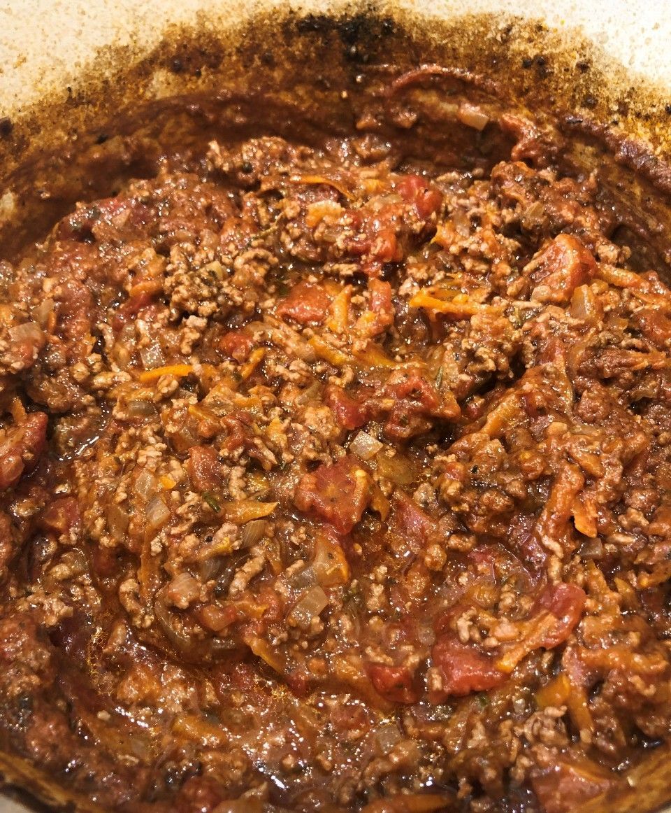 My version uses a sauce of bolognese to coat the pasta, along with the obligatory mozzarella, parmesan and basil.
